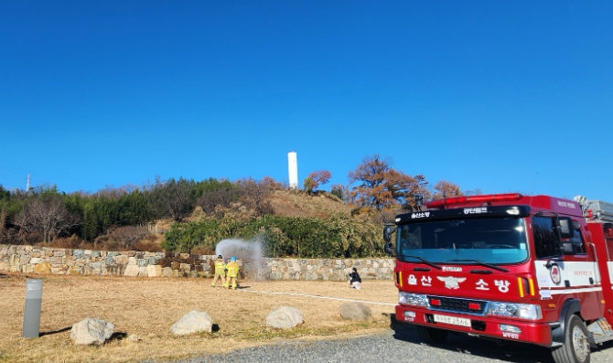 이날 훈련은 남구청 문화예술과 직원과 공단119안전센터, 해당 문화유산 관리 근로자들이 참여한 가운데 개운포 경상좌수영성 성곽 주변 잔디에서 발생한 화재가 확산되고 있는 상황을 가정해 합동으로 전개됐다.