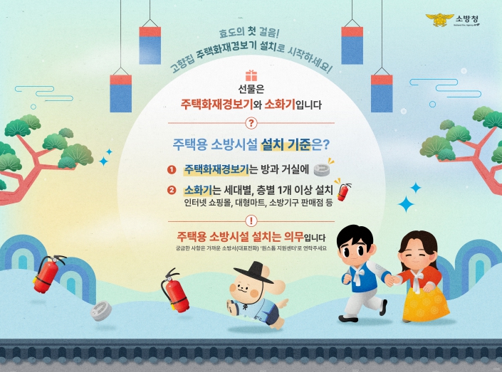 한창완 경산소방서장은 “주택용 소방시설은 가족과 이웃의 생명을 지키는 가장 확실한 안전장치이자 최고의 명절 선물”이라며 “시민 여러분께서도 소중한 분들께 안전을 선물하는 마음으로 적극 동참해 주시기를 바란다”고 말했다