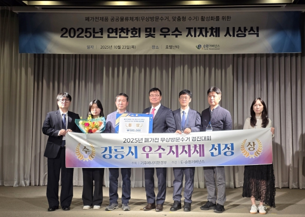 [무한뉴스=정민정 기자] 강릉시는 지난 6월 세계 환경의 날을 맞이하여 자원순환 및 재활용 활성화에 기여한 공로로 ‘환경보전 유공 국무총리 단체표창’을 수상하는데 이어, 23일 기후에너지환경부가 주최하는 '2025년 폐가전 무상수거처리 전국 지자체 경진대회'에서 ‘동상’을 수상하여 기후에너지환경부장관 단체표창을 받는 쾌거를 이뤘다.