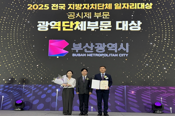 [무한뉴스=최진수 기자] 부산시는 오늘(30일) 오후 2시 청주오스코에서 열린 '2025 전국 지방자치단체 일자리대상' 시상식에서 '공시제 부문' 광역단체 대상(국무총리상)과 '우수사업 부문' 우수상(장관상)을 각각 수상했다고 밝혔다.