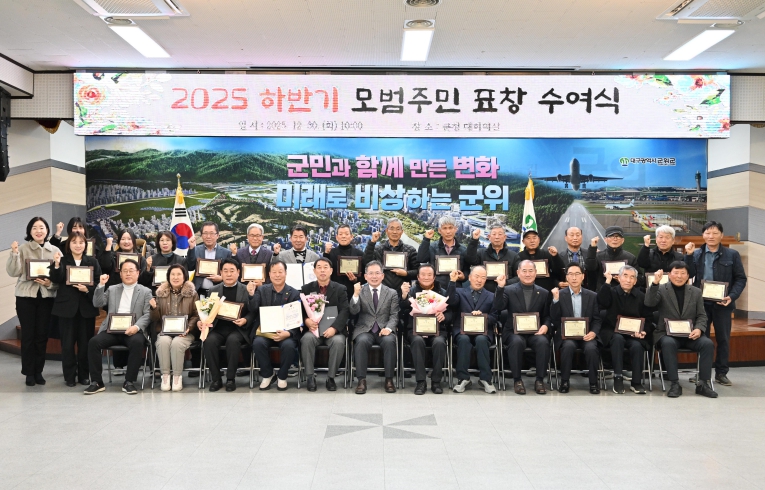 [무한뉴스=최진수 기자] 군위군은 30일 오전 10시 군청 대회의실에서 수상자와 가족, 부서장 등 50여 명이 참석한 가운데 2025년도 하반기 모범 주민에 대한 표창 수여식을 개최했다.