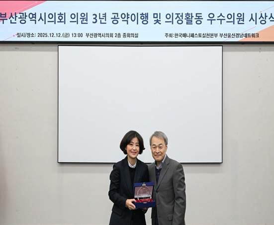 [무한뉴스=최진수 기자] 부산광역시의회 김효정 의원(국민의힘, 북구 만덕·덕천)이 2025년 연말, 주요 의정 평가 상을 잇따라 수상하며 북구 출신 시의원 가운데 ‘최다 수상’이라는 독보적인 기록을 달성했다. 중앙과 지방, 유권자 단체를 아우르는 평가 기관들로부터 연이어 대상을 수상하며, 연말 의정 평가를 사실상 “싹쓸이”했다는는 평가를 받고 있다.