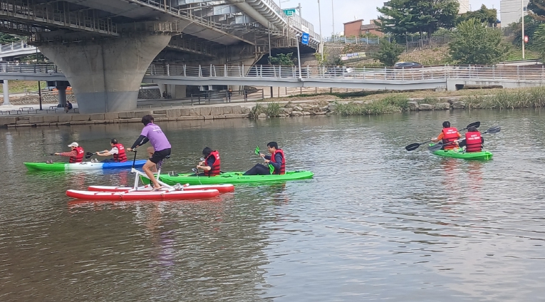 [무한뉴스=정승훈 기자] 서울 동대문구는 30일 이문수변공원 내 수상스포츠체험교육장에서 시각장애인 대상 카약 체험을 진행했다고 밝혔다.