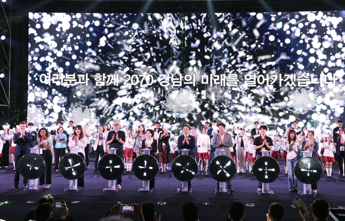 [무한뉴스=박노신 기자] 조성명 강남구청장이 26일 코엑스 동측광장 특설무대에서 열린 개청 50주년 기념 강남페스티벌 개막식에서 ‘2070 강남 비전’을 발표했다.