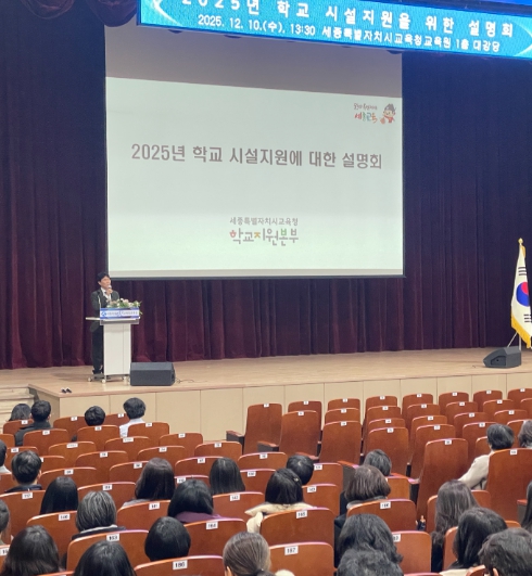 [무한뉴스=정민정 기자] 세종특별자치시교육청 학교지원본부는2026년 사업계획을 앞두고 학교 시설공사에 대한 업무 부담을 줄이고 이용자의 의견을 수렴하기 위해 추진하는 ‘학교 시설지원사업’ 설명회를 152개 초중고 학교를 대상으로 12월 10일에 세종시교육청교육원에서 개최했다.