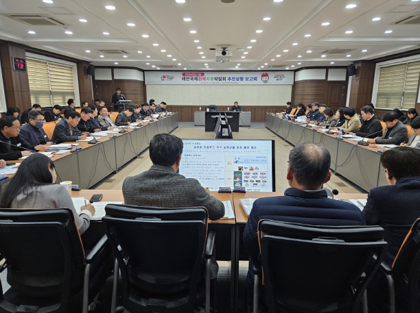 군은 지난 16일 군청 중회의실에서 ‘2026년 1월 태안국제원예치유박람회 추진상황 보고회’를 열고, 153억 원이 투입되는 41개 연계사업의 부서별 추진 현황을 촘촘히 점검하며 성공적인 개최를 위한 최종 담금질에 나섰다.