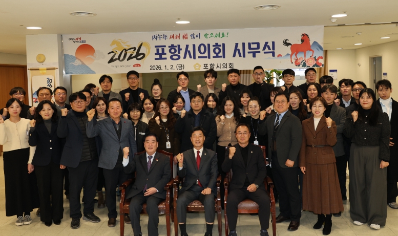 [무한뉴스=최진수 기자] 포항시의회가 2일 오후 시의회 4층에서 2026년도 시무식을 개최했다.