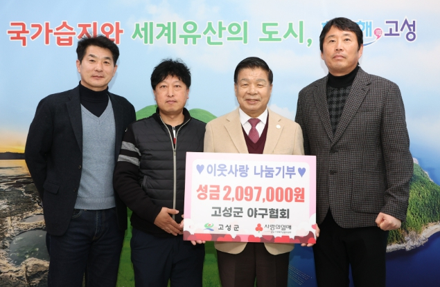 [무한뉴스=최진수 기자] 고성군 야구협회(협회장 신용락)는 12월 26일, 고성군을 방문하여 어려운 이웃에게 써달라며 이웃돕기 성금 209만 7천 원을 기탁했다.