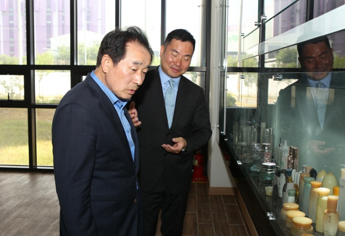 [무한뉴스=정민정 기자] 송기섭 충북 진천군수는 12일 군 산수산업단지 소재 화장품 용기 제조기업 ㈜천경(대표 권순교)을 방문했다.