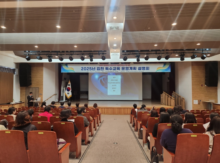 [무한뉴스=최진수 기자] 경상북도김천교육지원청은 4월 3일 김천학생문화예술센터에서 관내 유·초·중·고등학교 특수교사 및 특수교육 업무담당자 70명을 대상으로 ‘2025 김천 특수교육 운영계획 설명회’를 개최했다.
