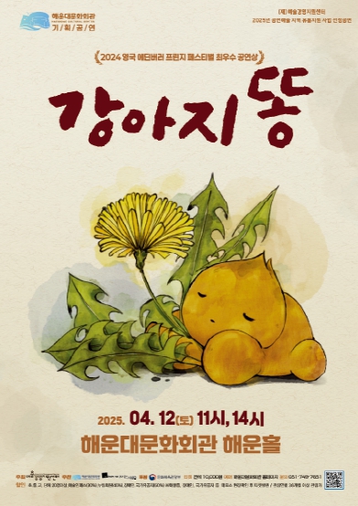 [무한뉴스=최진수 기자] 해운대문화회관은 12일 오전 11시와 오후 2시 어린이 연극 ‘강아지똥’을 해운홀 무대에 올린다. 이번 공연은 예술경영지원센터의 ‘2025 공연예술 지역 유통지원 사업’ 선정작이다.