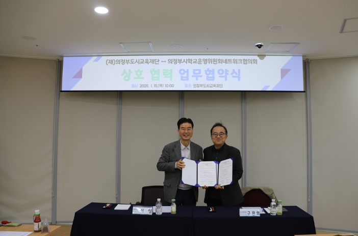 [무한뉴스=정승훈 기자] 의정부도시교육재단은 1월 15일 의정부시학교운영위원회네트워크협의회와 ‘지역 내 교육 자원 및 교과연계형 도시교육 사업 발굴을 위한 업무협약’을 체결했다고 밝혔다.