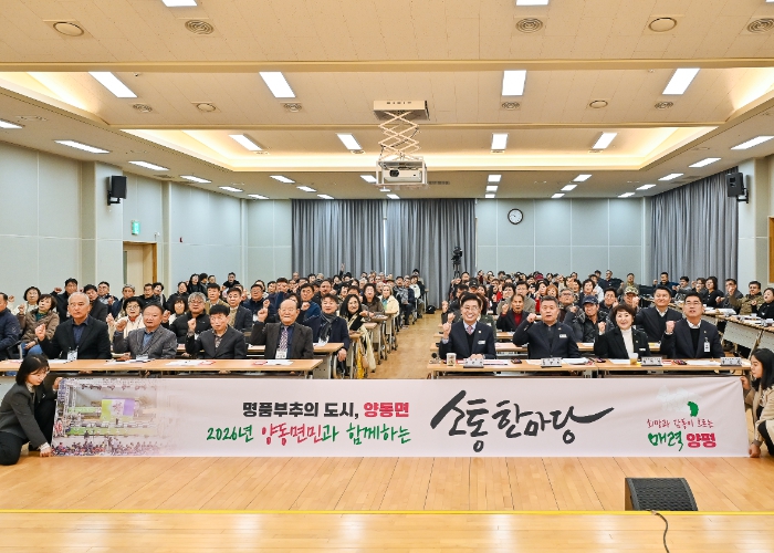 이어 2026년 양동면 도약을 위한 향후 추진 계획으로 △경의중앙선 전철 지평–양동–원주 간 연장 △채움플러스 복합센터 및 기초생활거점 조성사업 △흙향기 맨발길 및 양동면 레포츠공원 조성 △시장별 맞춤형 상권 활성화 및 양평사랑상품권 발행 등 동부권 발전과 민생경제 우선을 위한 주요 정책 방향을 제시했다.