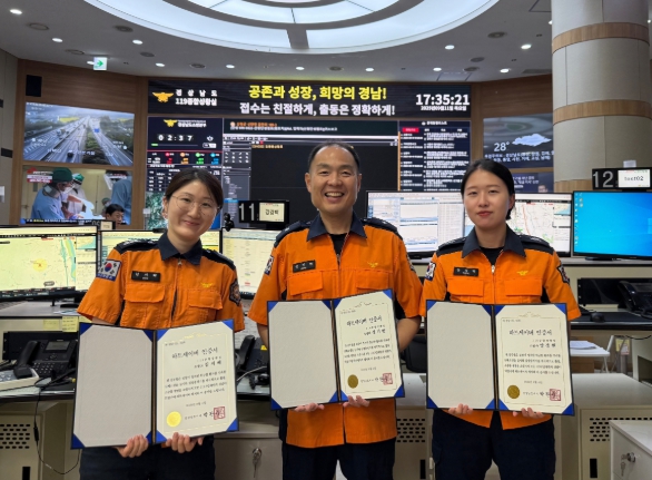 [무한뉴스=최진수 기자] 경상남도 소방본부(본부장 이동원)는 16일 위급 상황에서 침착하게 대응해 소중한 생명을 구한 119종합상황실 소속 직원 5명에게 '하트세이버 인증서'를 수여했다고 밝혔다.