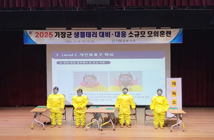 훈련은 기장군보건소 주관으로 부산광역시 감염병관리과, 기장경찰서, 기장소방서, 기장군 소재 의료기관 등이 참여한 가운데 경기장 내 생물테러 의심 상황을 가정하여 진행됐다.