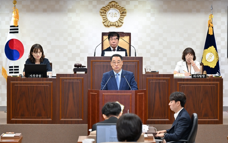 | ▲ 해운대구의회 이상곤 의원이 제289회 임시회 3차 본회의에서 5분 발언을 하고 있다. |