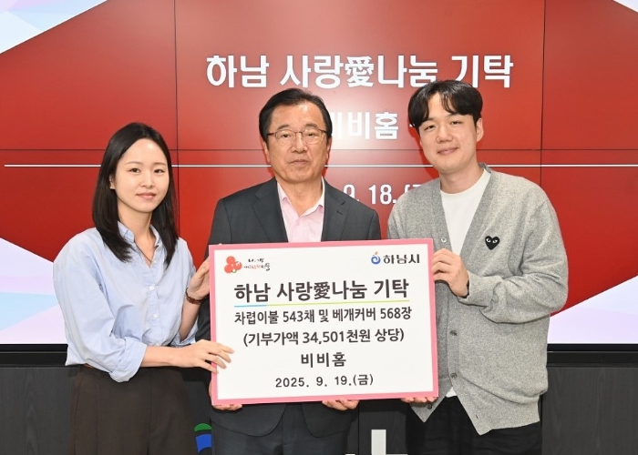 [무한뉴스=박노신 기자] 지난 19일, 침구 제조·판매업체 비비홈은 하남시 관내 어려운 이웃들을 위해 차렵이불 543채, 베개커버 568장 (34,501천원 상당)을 기탁하며 기탁식을 가졌다.