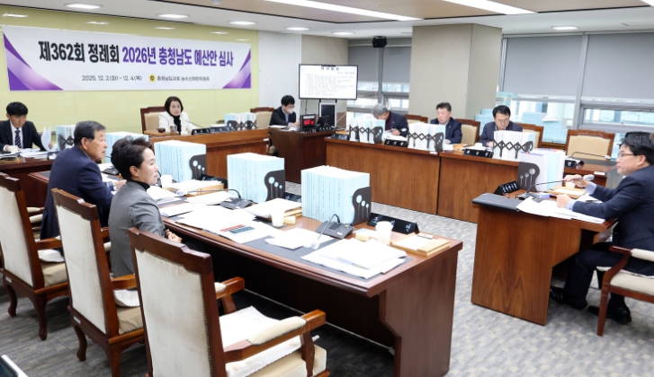 [무한뉴스=정민정 기자] 충남도의회 농수산해양위원회는 2일 제362회 정례회 2차 회의에서 충남도 농축산국 소관 2025년도 제3회 추가경정예산안, 2026년 본예산안, 조례 제‧개정안, 동의안 등을 심사했다.
