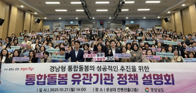[무한뉴스=최진수 기자] 경상남도(도지사 박완수)는 27일 오후 2시 문성대학교 컨벤션홀에서 ‘경남형 통합돌봄 유관기관 정책 설명회’를 개최했다고 밝혔다.
