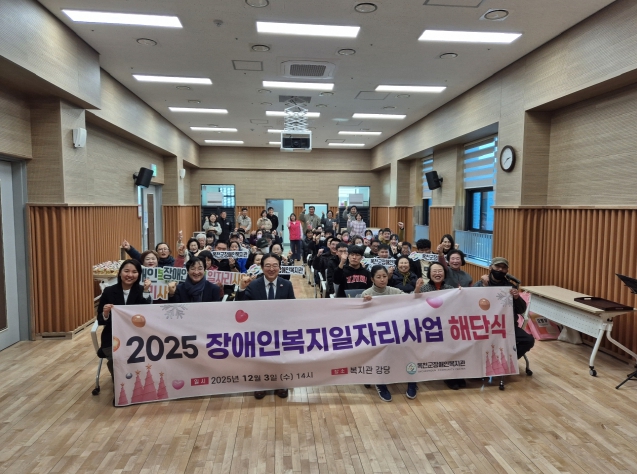 [무한뉴스=정민정 기자] 옥천군장애인복지관이 3일 일자리 참여자의 한 해 동안의 노고를 격려하고 근로 의욕을 높이기 위해 ‘2025년도 장애인복지일자리사업 해단식’을 개최했다.