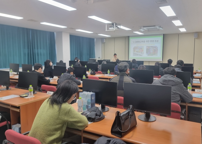 [무한뉴스=최진수 기자] 경상북도상주교육지원청은 2025년 12월 3일 상주교육지원청 소통이음실과 컴퓨터실에서 상주 관내 유․초․중․고등학교 다문화교육 업무담당 교사 55명이 참석한 가운데‘지역 다문화교육 정책학교 운영 사례 나눔’행사를 개최했다.