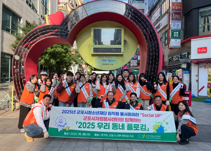 [무한뉴스=손성기 기자] 군포시청소년재단은 지난 10월 28일, 재단 임직원봉사단 30여 명이 참여한 가운데 군포시자원봉사센터와 함께 ‘2025 우리동네 플로깅’ 봉사활동을 성공적으로 진행했다고 밝혔다.