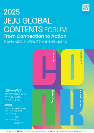 [무한뉴스=정민정 기자] (재)제주콘텐츠진흥원은 오는 12월 4일 진흥원 BeIN;(비인) 공연장에서‘2025 제주 글로벌 콘텐츠 포럼(Jeju Global Contents Forum)’을 개최하고, 제주 토종 콘텐츠의 글로벌 시장 진출을 위한 본격적인 지원 사격에 나선다고 밝혔다.
