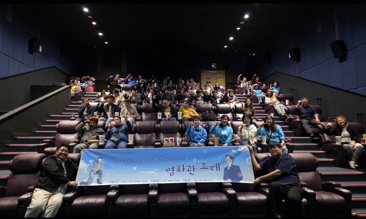 [무한뉴스=정승훈 기자] 평택북부장애인복지관은 가수 임영웅 팬클럽 ‘영웅시대 평택 온기’와 함께 10월 23일(목) 14:00부터 17:00까지 CGV평택고덕점에서 평소 영화 관람이 어려운 평택시 장애인 50명을초청하여 함께 영화를 보는 문화 행사 ‘임영웅과 온기의 영화관 초대’ 행사를 진행 했습니다.