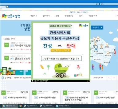 지난 2월 금호1가동 주민 이한준씨는 ‘성동구민청’에 관공서에 유모차 우선주차 공간을 만들어 달라는 제안을 올렸다.