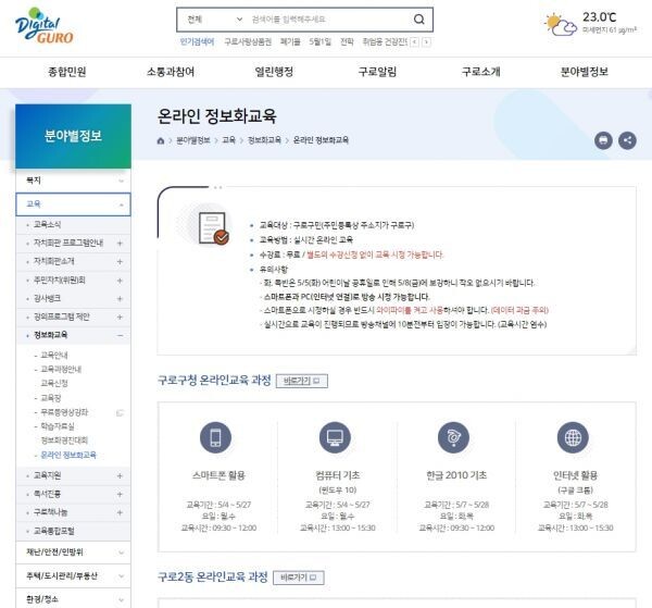 구로구는 “정보화 교육 재개에 대한 주민들의 요구가 이어져 코로나19가 안정될 때까지 온라인을 활용해 교육을 실시키로 결정했다”고 4일 밝혔다.