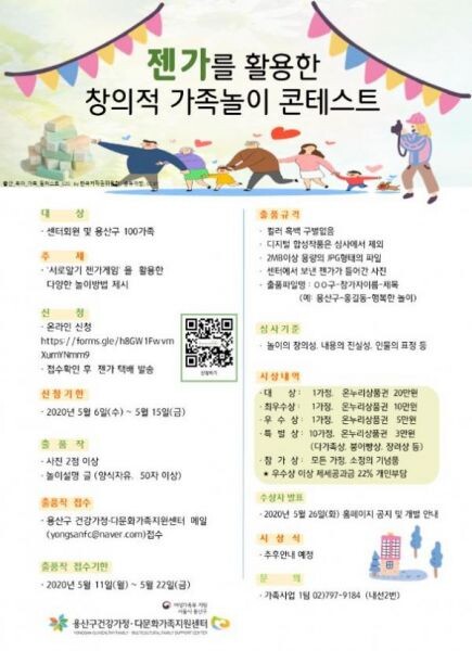[무한뉴스] 서울 용산구 건강가정·다문화가족지원센터가 5월 가정의 달을 맞아 ‘젠가를 활용한 창의적 가족놀이 콘테스트’를 연다.