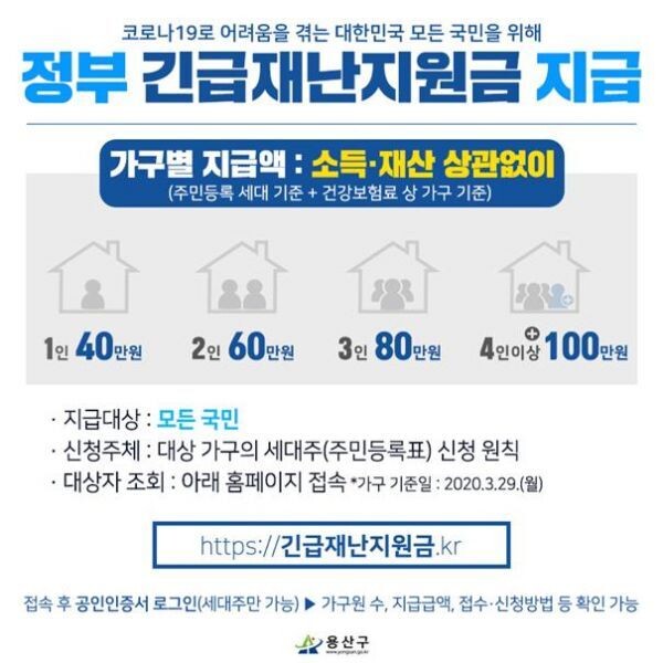 [무한뉴스] 서울 용산구가 오는 11일부터 정부 긴급재난지원금 지급 온라인 신청을 받는다.