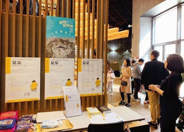 관람객들은 경의선 책거리 입구에 설치된 미디어북월을 통해 서평그리기 대회의 수상작을 감상할 수 있다.
