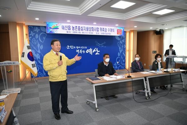 [무한뉴스] 예산군은 지난 6일 농림축산식품부가 주관하는 예산읍농촌중심지활성화사업 기본계획을 본격 추진하기 위한 추진위원 및 전문가 자문단 위촉식을 군청 대회의실에서 개최했다.