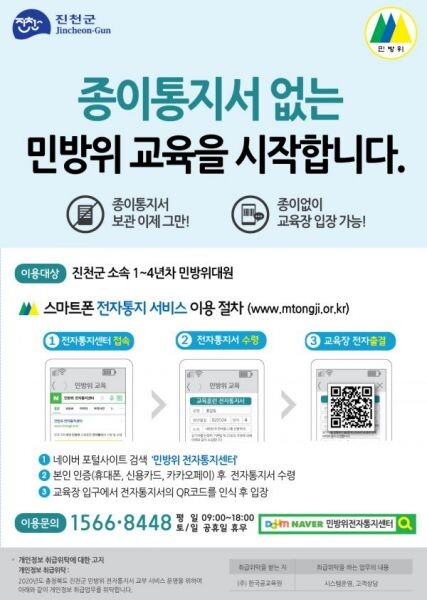 [무한뉴스] 진천군은 올해 6월 실시 예정인 상반기 민방위 교육부터 ‘민방위 전자통지·출결 시스템’을 충북 도내 최초로 도입해 시행한다고 8일 밝혔다.