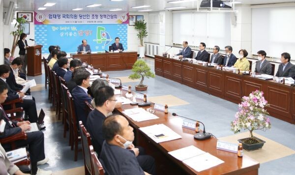 [무한뉴스] 단양군은 지난 11일 단양군청 회의실에서 엄태영 제21대 제천·단양 국회의원 당선자 초청 정책 간담회를 열고 군정 주요 현안 등에 대해 협의했다고 밝혔다.