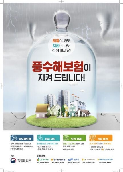 풍수해보험은 태풍, 호우, 강풍 등 예기치 못한 자연재난으로 발생한 피해를 실질적으로 보상하도록 만든 정책보험제도로 자연재난에 의한 사유재산 피해 지원제도의 한계점인 지원 금액과 시기 등을 보완했다.
