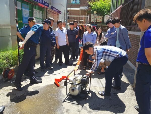 구는 동주민센터 직원들에게 수중펌프 및 엔진펌프 사용방법 사용 안전 수칙 수중펌프 및 엔진펌프 관리요령 등을 꼼꼼하게 교육했다.