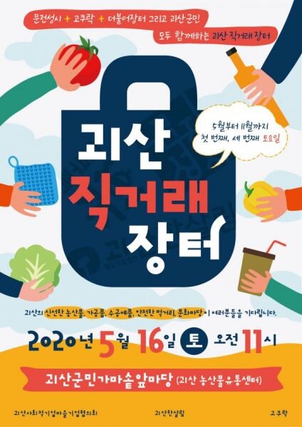 군은 오는 16일 개장을 시작으로 11월까지 매월 첫째·셋째주 토요일에 괴산군농산물유통센터 앞 광장에서 ‘괴산직거래장터’가 열린다고 밝혔다.