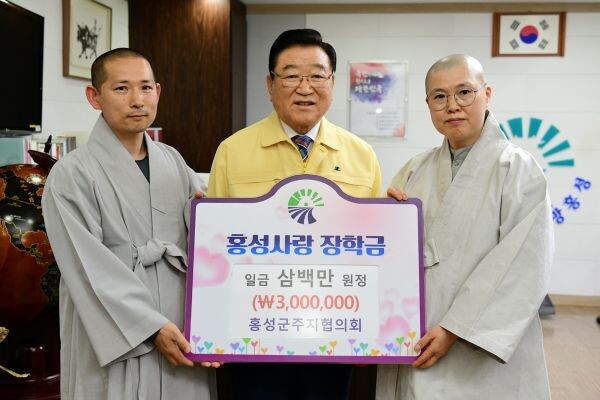 [무한뉴스] 대한불교조계종제7교구 홍성주지협의회장은 지난 11일 홍성사랑장학회에 부처님오신 날을 맞아 지역 인재육성을 위해 장학금 300만원을 기탁했다.