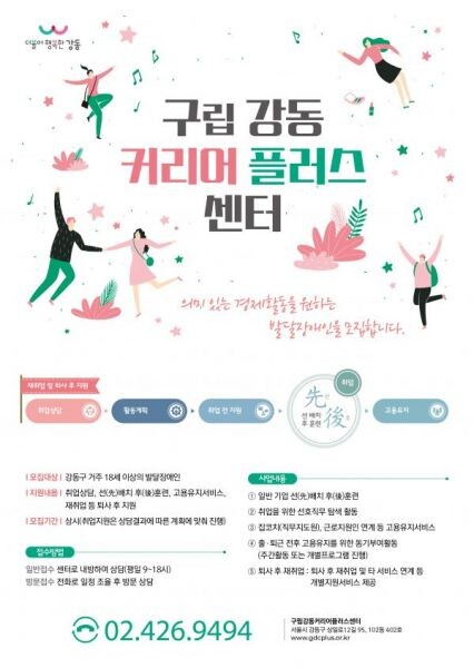이정훈 강동구청장은 “강동커리어플러스센터를 통해 발달장애인이 지역사회의 한 구성원으로서 안정적인 경제활동을 영위할 수 있길 기대한다”며 “장애인비장애인 구분 없이 더불어 행복한 강동을 만들기 위해 끊임없이 노력하겠다”고 전했다.