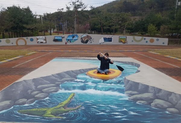[무한뉴스] 계룡시가 계룡문화예술의전당 야외공연장에 설치한 트릭아트 포토존이 시민들의 눈길을 끌고 있다.
