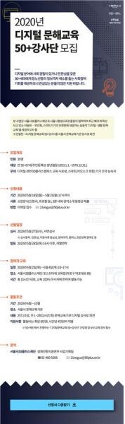‘디지털문해교육 50+강사단’은 총 35명을 선발하며 디지털 역량을 갖춘 만 50~67세의 서울 시민이라면 누구나 지원할 수 있다.