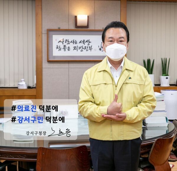 [무한뉴스] 서울 강서구 노현송 구청장은 19일 오전 10시 구청장실에서 코로나19 '덕분에 챌린지'에 동참했다.