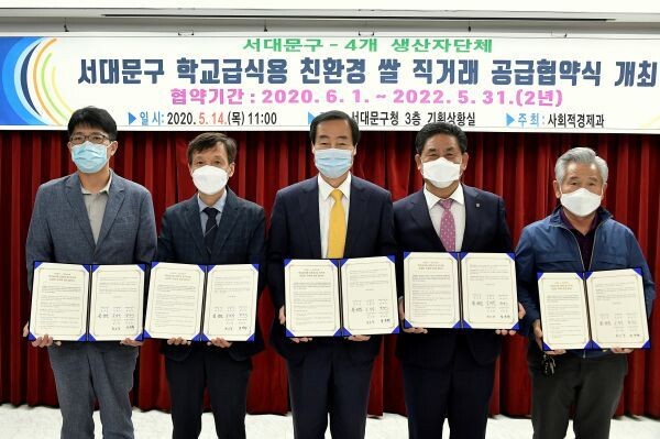 [무한뉴스] 서대문구는 전북 완주군 고산농업협동조합, 경북 안동시 영농조합법인 나눔과섬김, 전남 해남군 땅끝황토친환경 영농조합법인, 경북 예천군 영농조합법인 연자방아친환경쌀 등 4개 생산자단체와 최근 ‘학교급식용 친환경 쌀 직거래 공급협약’을 체결했다고 19일 밝혔다.
