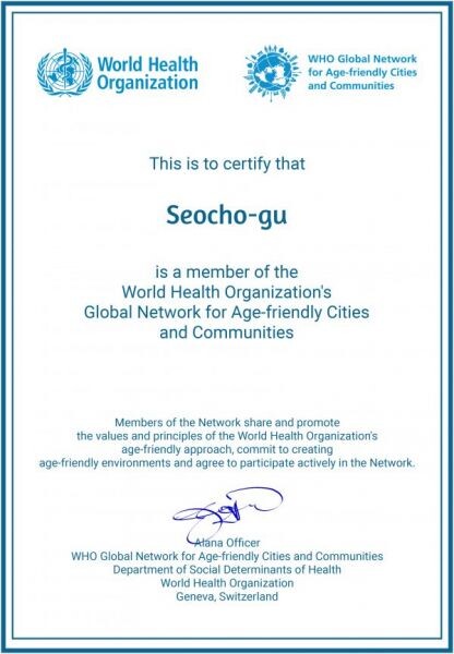 조은희 구청장은 “그 동안 어르신들을 위한 다양한 노력을 기울인 서초구가 WHO로부터도 인정을 받았다.