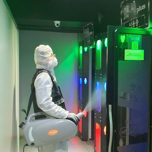 구의 소독 기동반이 평소에 감염 취약시설 중심으로 방역활동을 펼치는 가운데 전문 업체를 통한 코인노래방 추가방역이 시행됐다.