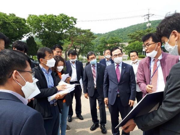 [무한뉴스] 박상돈 천안시장이 22일 오전 북면~입장면 일대에서 김용찬 충청남도 행정부지사와 관계자들이 참석한 가운데 진행된 국지도57호선 한국개발연구원 일괄예비타당성조사 현장실사에 직접 참여했다.