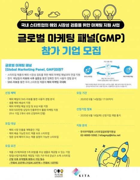 이번 사업은 해외진출 계획이 있는 스타트업을 현지 소비자·전문가로 구성된 마케팅 패널과 연결시켜 제품의 시장성을 테스트하는 것으로 구는 오는 7월 스타트업 20개사를 선발한다.