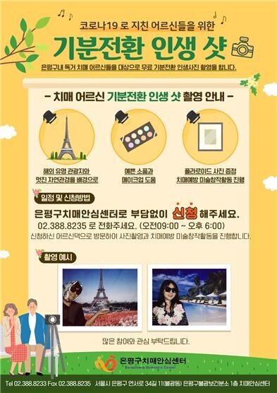 은평구 치매안심센터는 이번 ‘기분전환 인생샷’ 프로젝트를 통해 치매어르신들 중에서도 상대적으로 사회적 교류가 적은 독거 치매어르신이 심리적 지지를 얻고 삶의 환기를 경험 할 것으로 기대하고 있다.